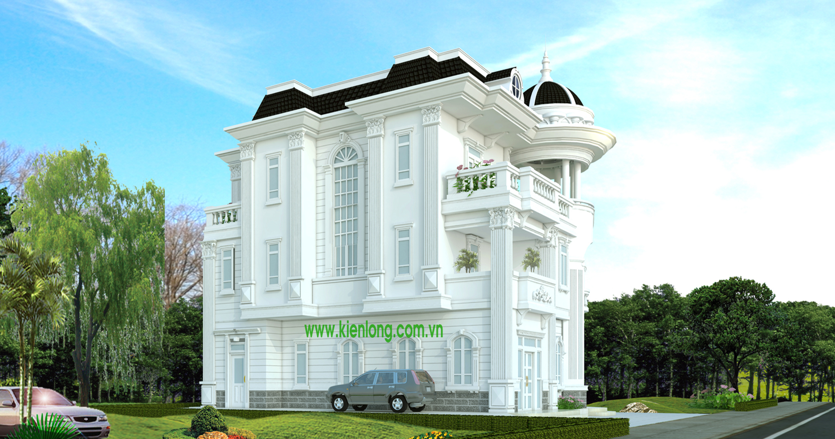 Biệt thự với kiến trúc tân cổ điển lấy sắc trắng làm chủ đạo