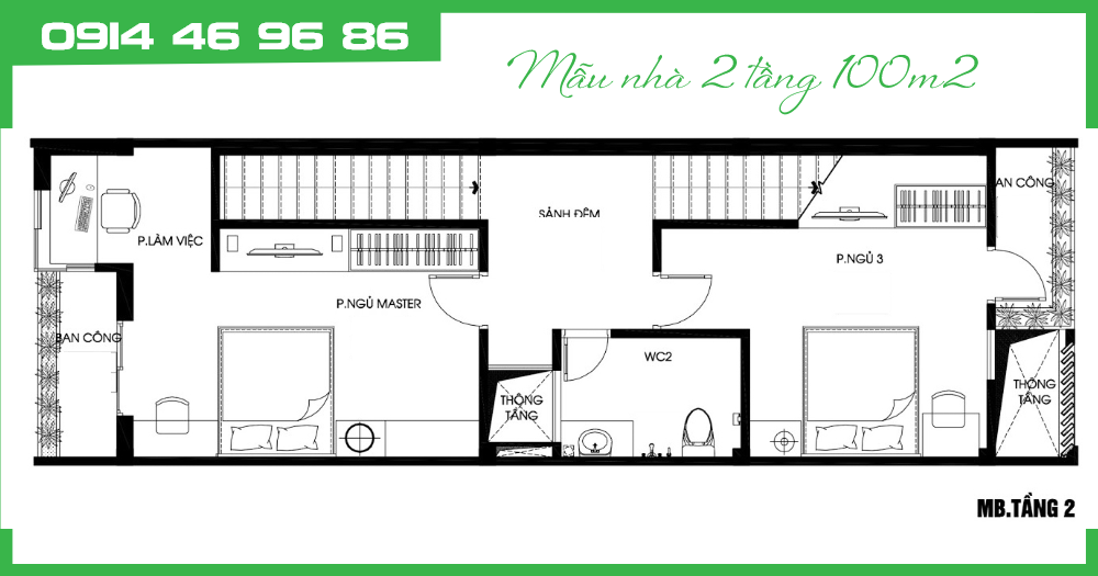 Mat bang cong nang tang 1 mau nha 2 tang 100m2