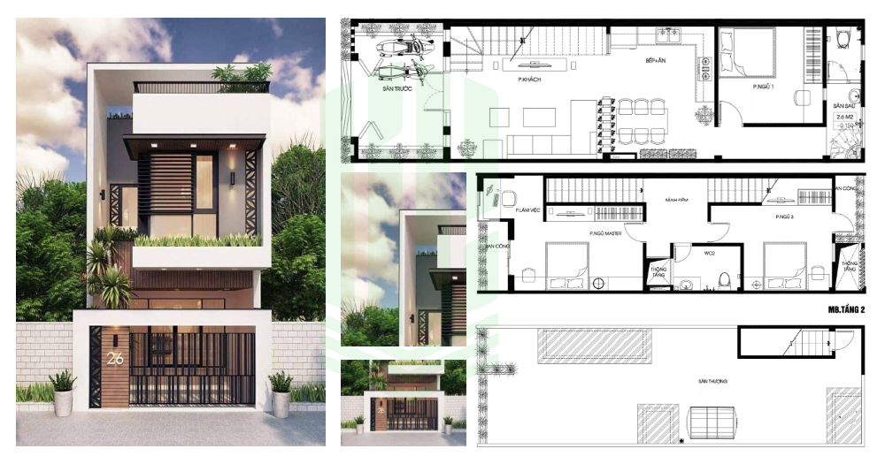 TỐI ƯU MẶT BẰNG CÔNG NĂNG MẪU NHÀ 2 TẦNG 100M2