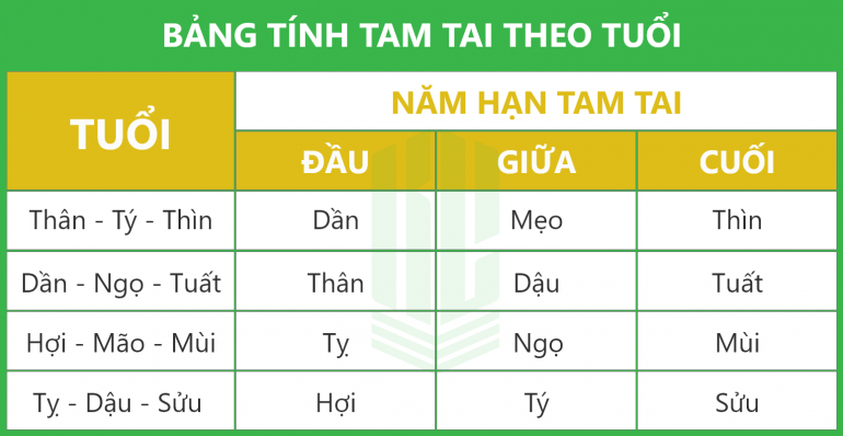 Tam là ba, Tai là tai họa. Tam Tai là những tai họa diễn ra liên tiếp trong 3 năm. Trong đó, năm đầu tiên thường gặp hạn nhẹ hơn, năm thứ 2 nặng nhất, năm thứ 3 là năm hồi phục. Thông thường, cứ 12 năm bạn sẽ gặp hạn tam tai 1 lần. Vì thế, hạn Tam Tai là hạn con người không thể tránh khỏi trong đời.